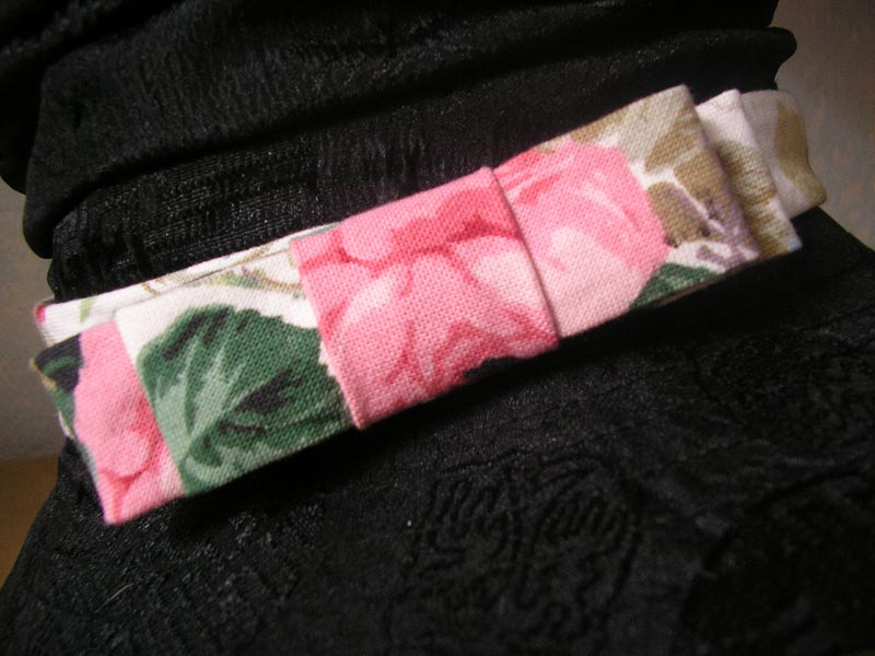 Detalle del adorno del sombrero negro con un floreado lazo zapatero: