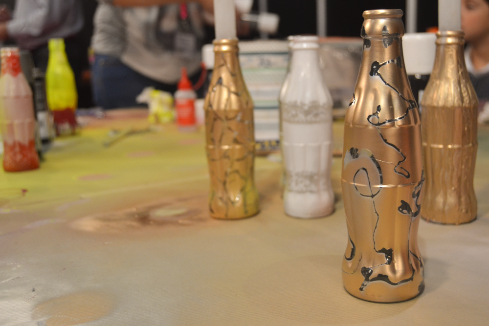 También reciclamos unas botellas de Cocacola para hacernos unos portavelas navideños con la ayuda de Novasol.