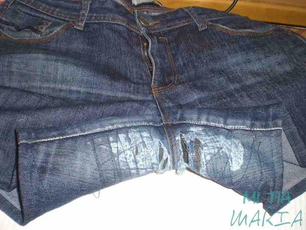 Pero en mi objetivo de intentar reciclar y reutilizar la ropa (es mi forma de contribuir con el medio ambiente) me saltó la idea de Pinterest a la mente, por eso llevo varios días trabajando con un par de pantalones que se me rompieron, que intenté reparar pero que las reparaciones no fueron de mi agrado y se quedaron el el montón de "ya veremos que pasa con esto"