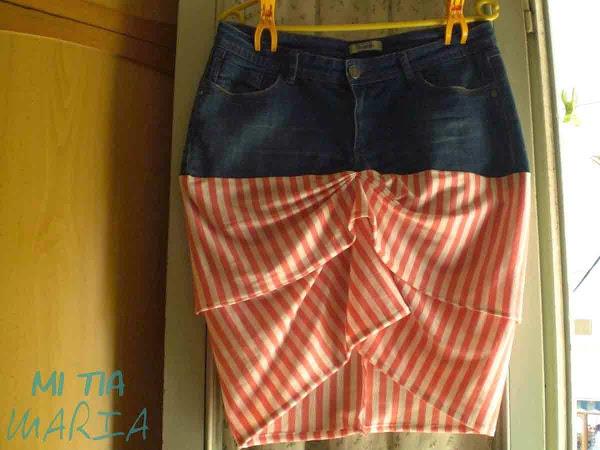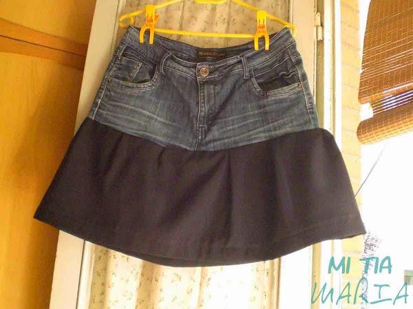 Esa es una forma, pero hoy os traigo otra versión, transformar el viejo pantalón en una nueva falda.