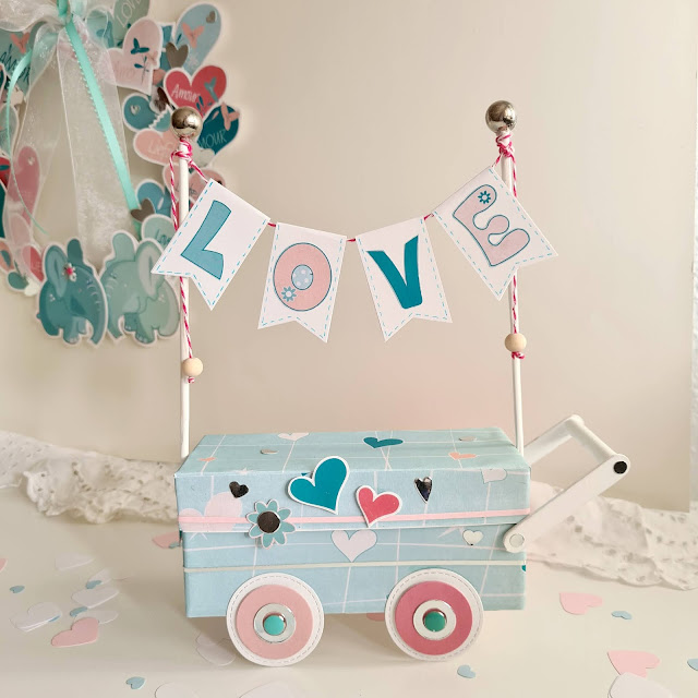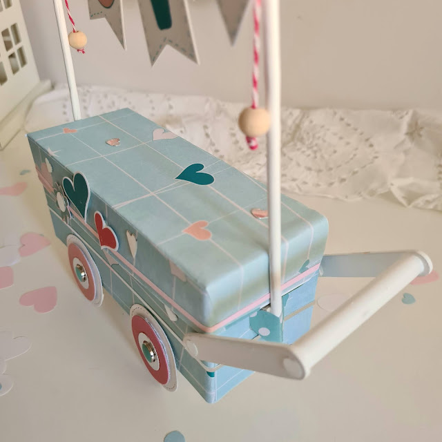 Se me ocurrió hacer algo para decorar un rinconcico para el día de San Valentín, siempre lo hemos celebrado y este año no iba a ser menos, así que pensé en un carrito, "El carrito del amor" como yo lo llamo, para guardar entre bombones una de las pistas del juego que estoy maquinando para ese día.