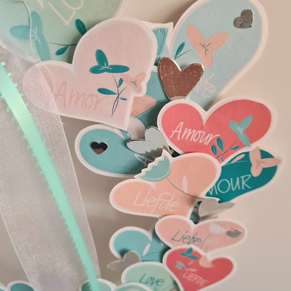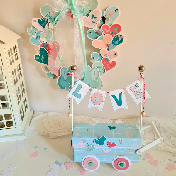 El carrito no podía estar sólo, quería algo para poner de fondo y al ver el diseño de corazones con el "Amor" en diferentes idiomas, me vino a la cabeza rápidamente hacer una corona
