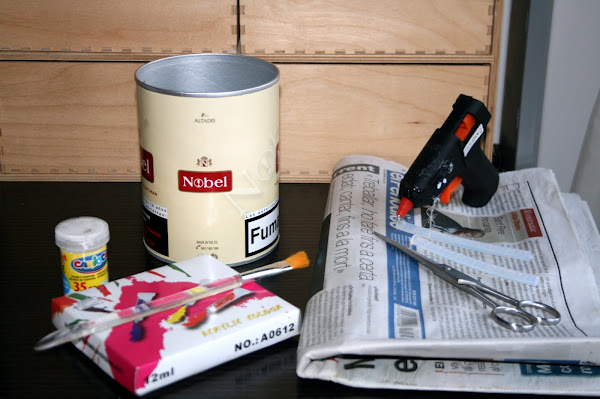 -Un bote (he utilizado el de la foto pero puede ser cualquiera que encontréis por casa, más pequeño, más largo, ancho.. no importa mucho el tamaño)