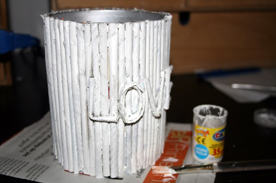 Una vez lo tenemos todo listo preparamos la pintura, en mi caso le tuve que dar dos capas para que quedase lo suficiente blanco, pero era una pintura escolar que secaba muy muy rápido, prácticamente después de dar la vuelta al bote podía volver a empezar, en la primera vuelta no queda muy cubierto, en la segunda no queda totalmente blanco pero a mi ya me gustó así: