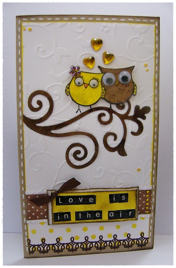 Una nueva tarjetita con deseos amorosos, con esta parejita acaramelada de buhitos...