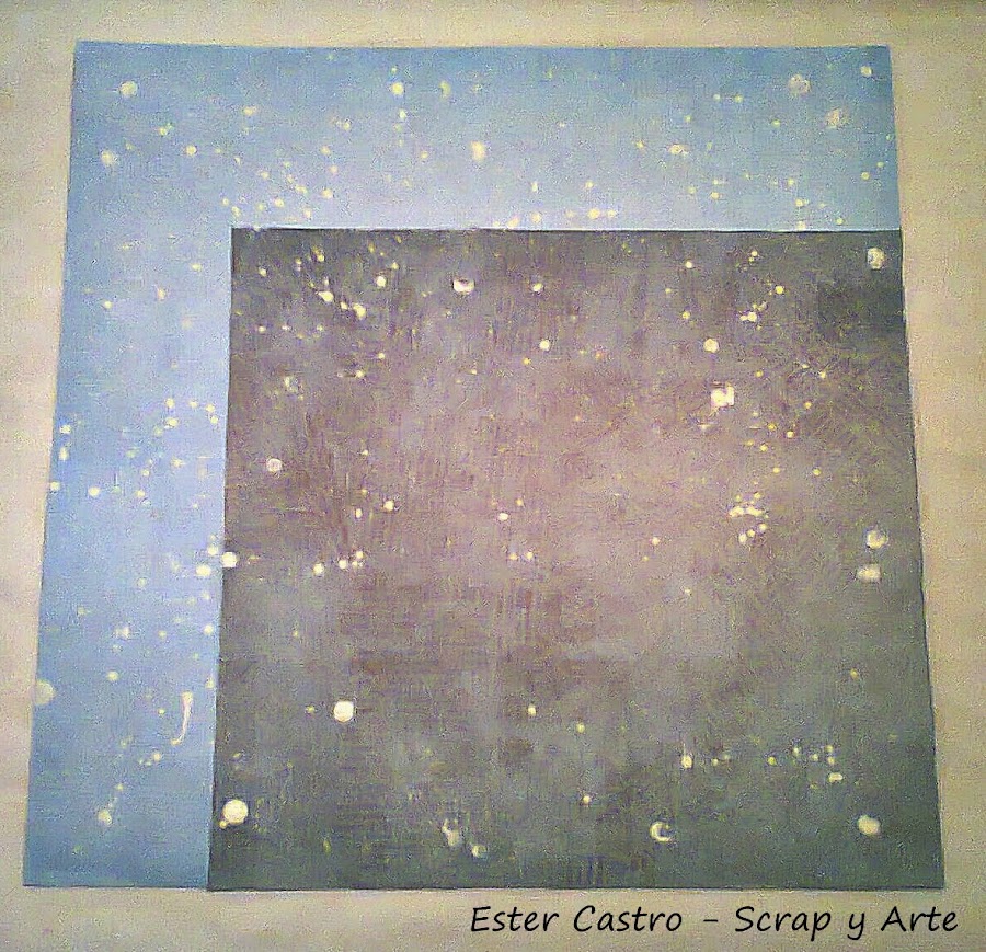 Sobre la base de papel que elegí pegue en el ángulo de abajo la primer Mat (alfombrita) a la cual le realice un desgastado en los bordes