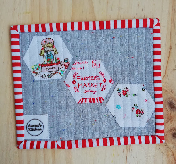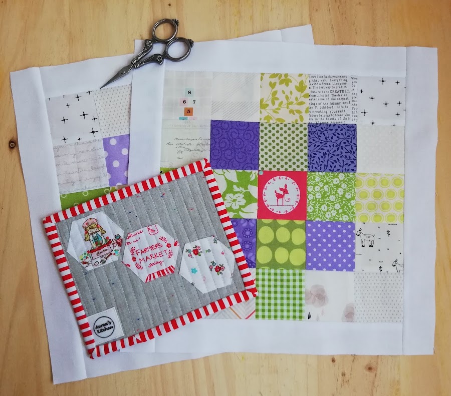 Además de los bloques le envié un posatazas con telas de Tasha Noel.