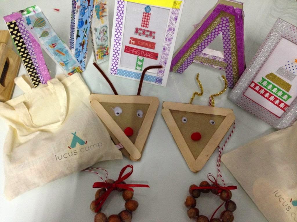 También decoraron un marco de fotos con arbol de navidad ,una cabeza de reno y una guirnalda navideña con avellanas.... ideas fáciles y muy resultonas.