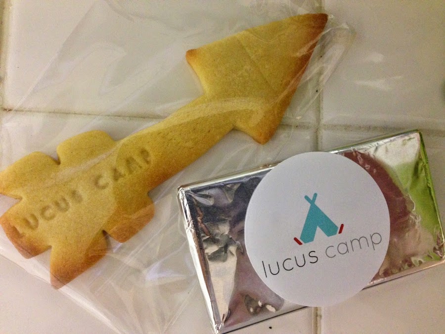 En la merienda les tenían preparada una bolsa con chocolatina, chuches, y una galleta con la flecha del evento...todo detalles !
