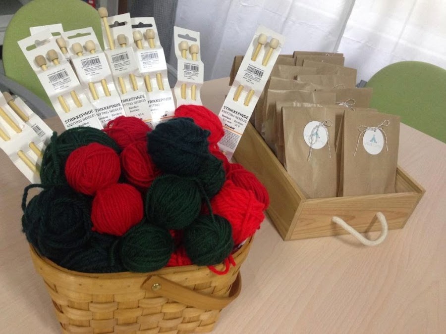 Mientras que estaban un poco entretenidos, las mamis aprendimos a hacer un árbol de navidad con calceta... mujeres al poder !! Yo hacía muchos años que no cogía unas agujas y el resultado fué bastante bueno.. para ser el primero !!