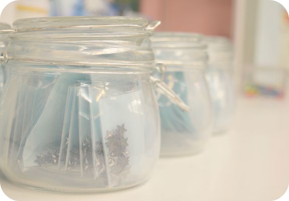 - Algunas de las cositas que tiene a la venta están en botes de cristal y cestitas de mimbre a las que seguro les esta dando una segunda vida.