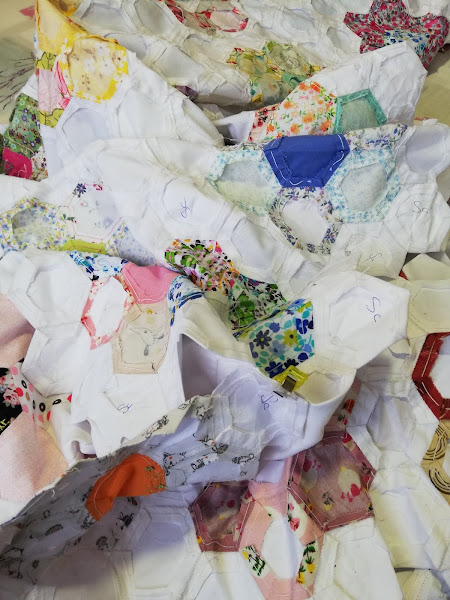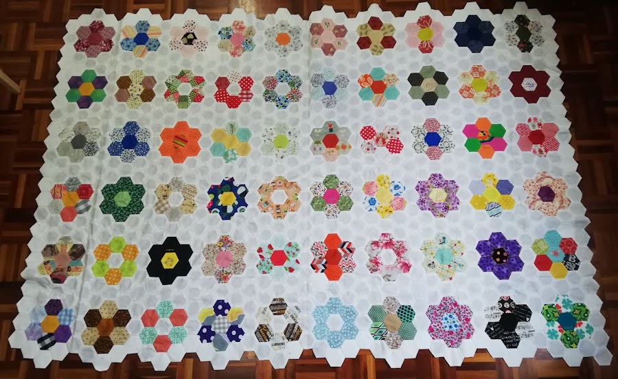 30 flores de hexágonos que me regalaron, o sea otros 210 hexágonos