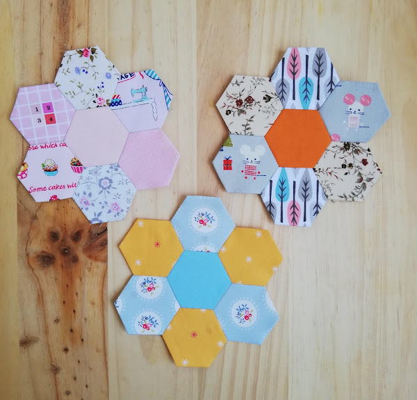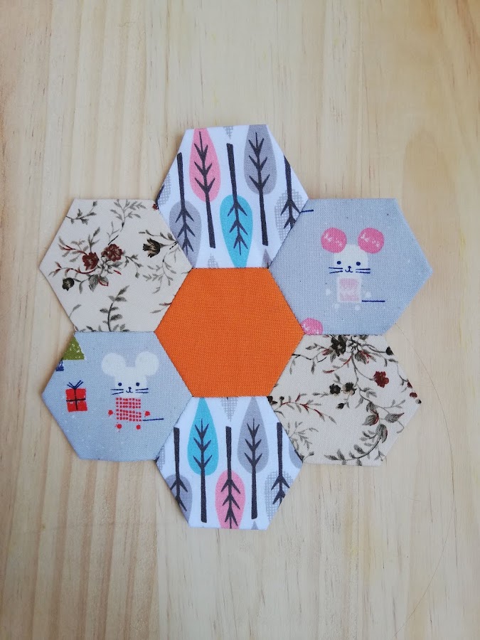 Y en este caso tenía varios hexágonos rosas y decidí unirlos en esta flor.