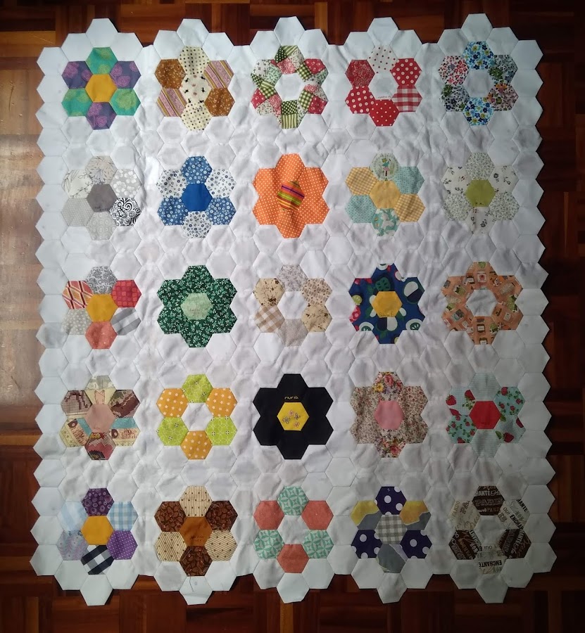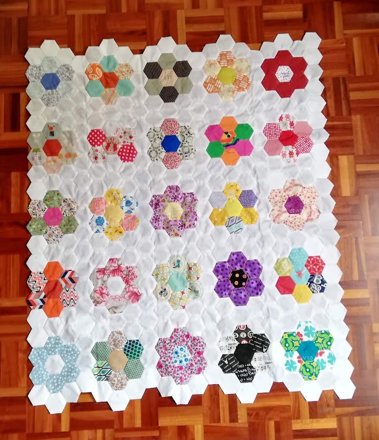 Es muy aburrido hacer hexágonos de tela blanca, pero son muy necesarios porque sin ellos no avanzo así que intento "premiarme"