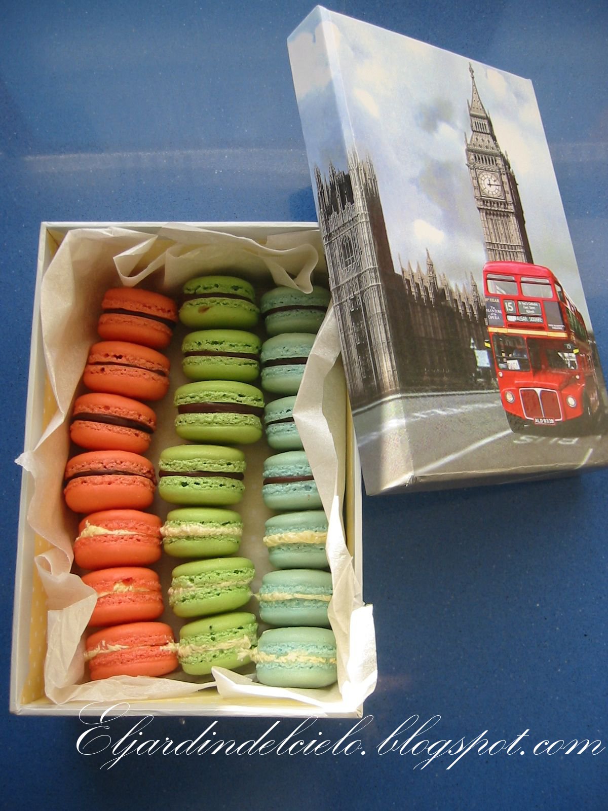 Los he colocado en esta caja Londinense que tanto me gusta ( soy amante incondicional de todo lo british, lo reconozco) aunque los famosos pastelitos en cuestión son franceses.