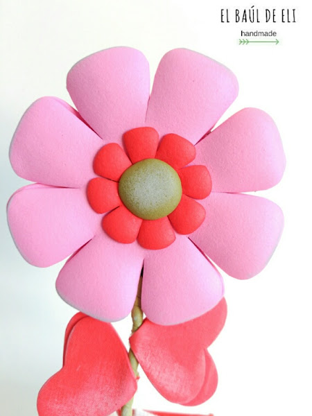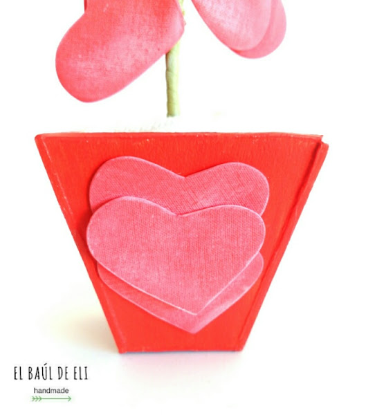 Nos queda recortar unos cuantos corazones, ponerlos como hojas en el tallo y decorar la maceta.