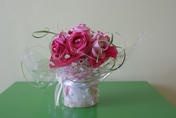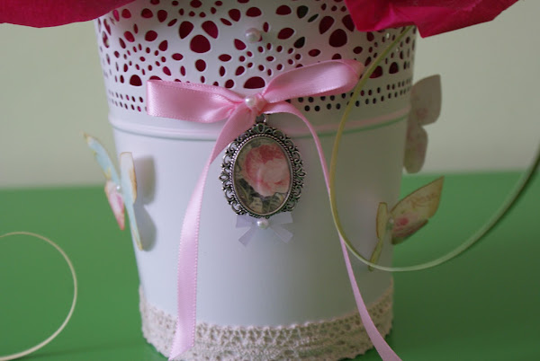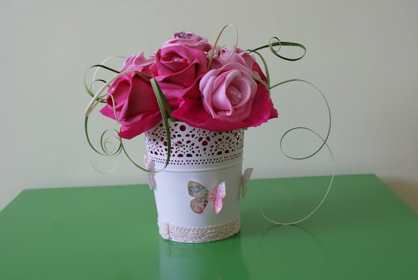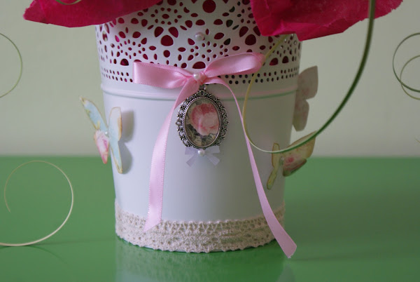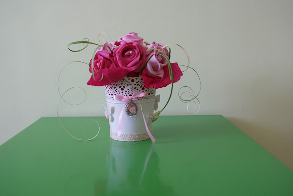 Maceta de flores tonos rosados