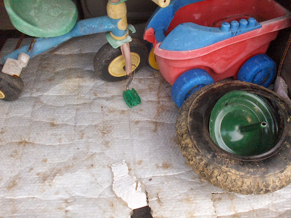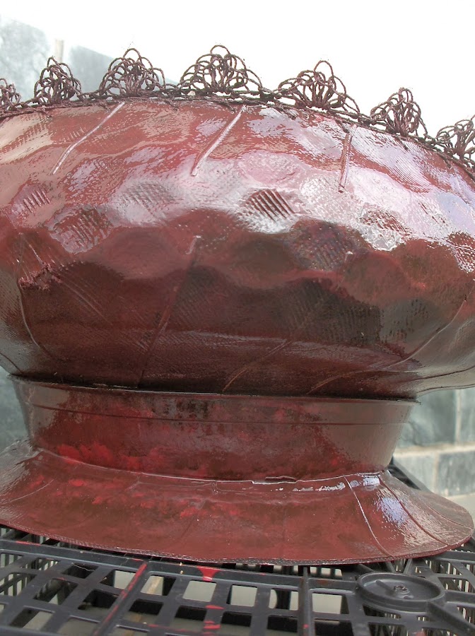 la pintura es una mezcla, sin revolver, de burdeos y caoba, pintado a golpes de brocha.