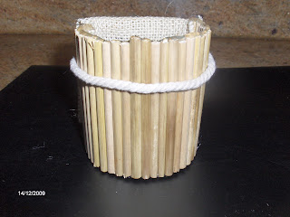 no lo pude resistir, la vi en el supermercado y me la traje para casa, fuerte y bonita, ideal para papelera del vestidor (que siempre hay envoltorios, cartones, plásticos.....) simplemente le pegué con cola 4 tapones a modo de patas, hice un remate a ganchillo que simplemente está sujetado en las esquinas con unos clips y listo!!!!!!!!!