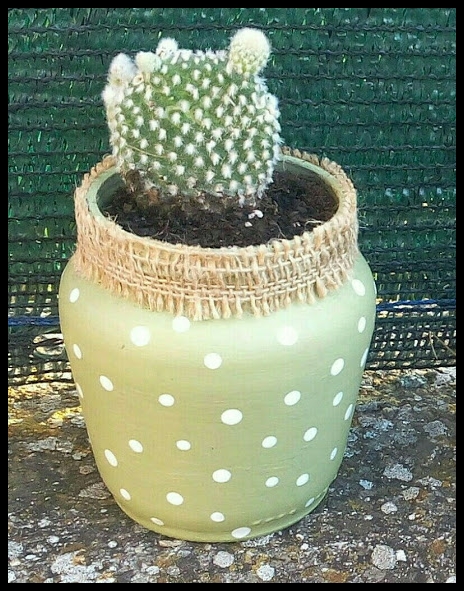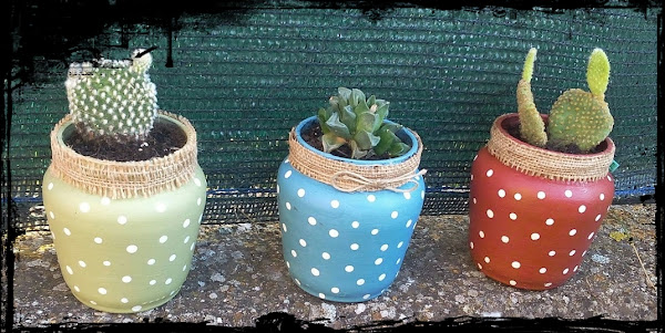 Como os daréis cuenta, se trata de un reciclaje, de botes de cristal y convertirlos en pequeños maceteros.