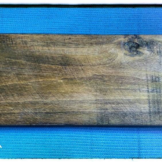 Hice una base, para los tres con un tablón de madera, porque pensaba ponerlos encima de un mueble y así evitaría las marcas del cristal.