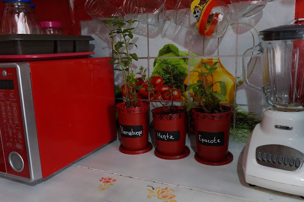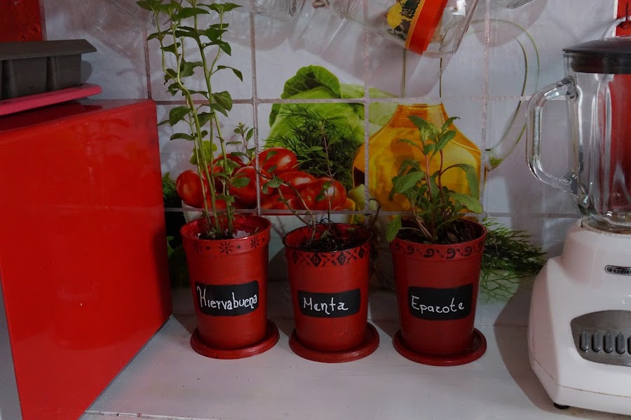 Ahora que están casi listas para ocuparlas, vamos a colocar etiquetas para nombrar a nuestras plantas, esto lo realicé con pintura para pizarrón, pero ustedes pueden adquirir etiquetas en forma de pizarrón, que son adheribles como está:
