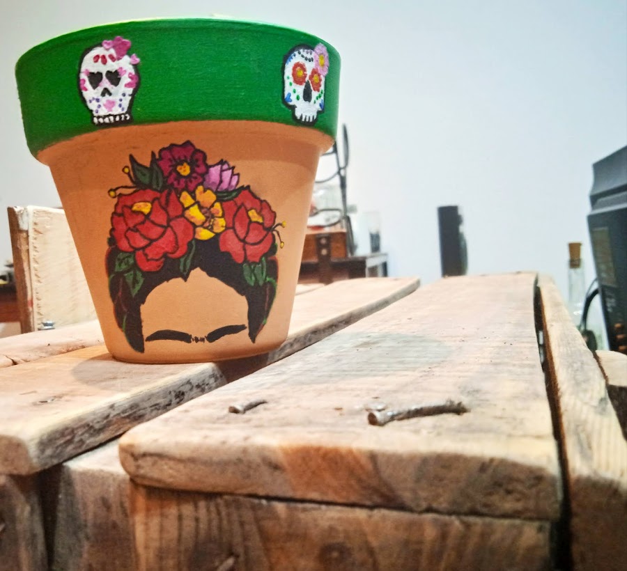 Busqué en internet bocetos de Frida Kahlo para hacer está maceta