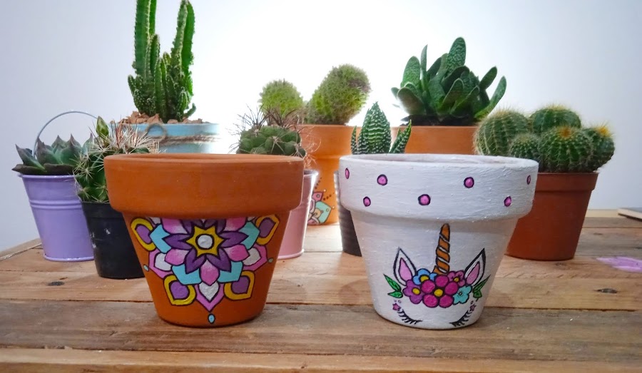 Os dejo una muestra de mis trabajos con las macetas, en mi próxima entrada de blog os haré un tutorial escrito con fotos para que veáis como se hace.