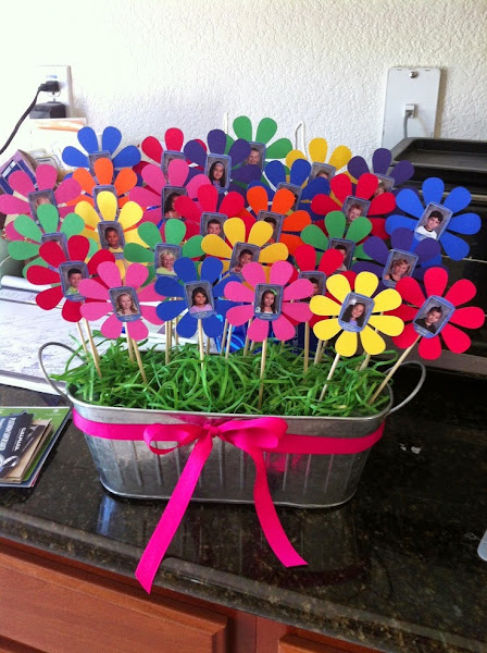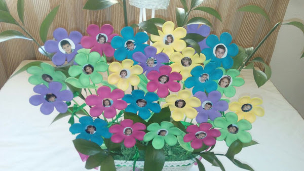 aparte de ello, al preparar las flores con una foto de cada niño al centro, imaginé que quedaría muy bonito añadir una muñequita, lo más parecida posible a la maestra, con una pequeña regadera, regando aquellas bonitas flores!
