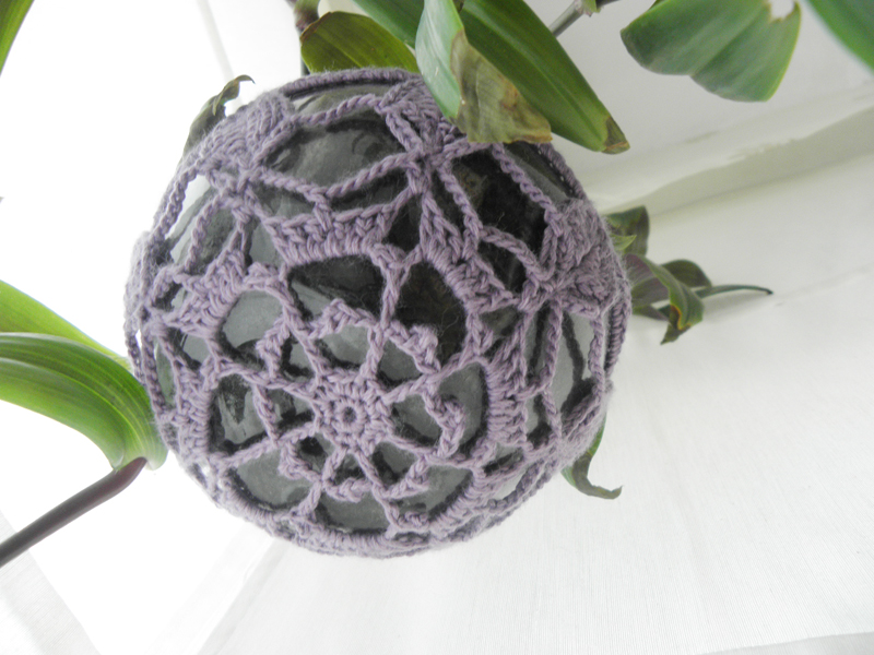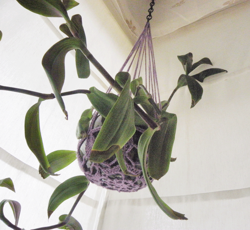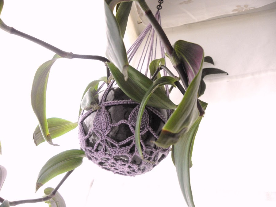 Siento que las fotos al estar hechas a contraluz no permitan apreciar el bonito color morado del macetero a ganchillo, y eso que la máquina de fotos es muy maja pero yo no sé manejarla, en fin es lo que hay.