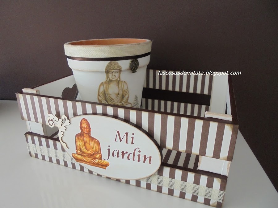 Hace tiempo que no me decoraba un macetero y la verdad que tenía ganas!! Este en concreto es para "mi jardín" aunque realmente es una terraza jijijiji En la última feria de Creativa compré una caja de madera que he querido decorar a juego, ya solo me queda plantarle el bambú y que me agarre