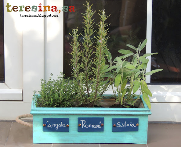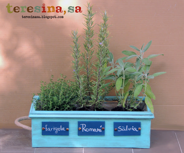 La cosa és que fa uns dies em van convidar a la re-inauguració de la casa d"uns amics. Habitualment, en aquest casos, es regala als amfitrions un ram de flors o una planta, però jo vaig pensar que podía ser una mica més original i regalar un porta-testos amb plantes aromàtiques dins (que sempre fan servei a la cuina). Com que capses de vins no me"n falten, dit i fet, i el que va sortir es això.