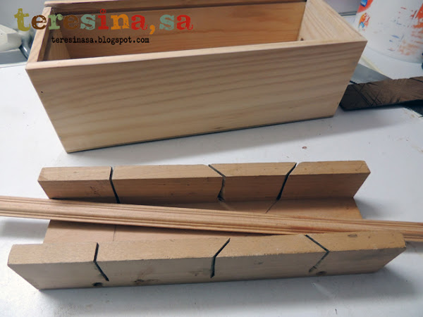 Medimos los lados de la caja y, con la caja de ingletes y una sierra, cortamos la moldura a la medida necesaria.