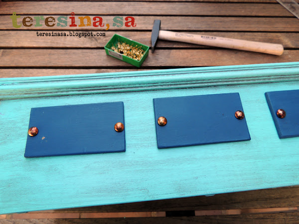 Clavamos los clavos de tapicería en cada agujero. De esta forma queda mas bonito.