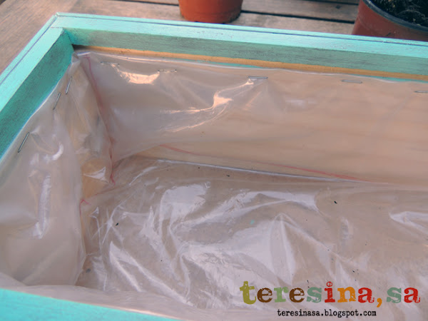 Por último, forramos la caja con plástico para protegerla de la humedad de las plantas y lo fijamos con unas grapas. Podemos utilizar algún tipo de plástico que sea resistente.
