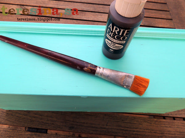 Pintamos la caja. Yo he elegido un color aguamarina, pero eso queda al gusto de cada uno.