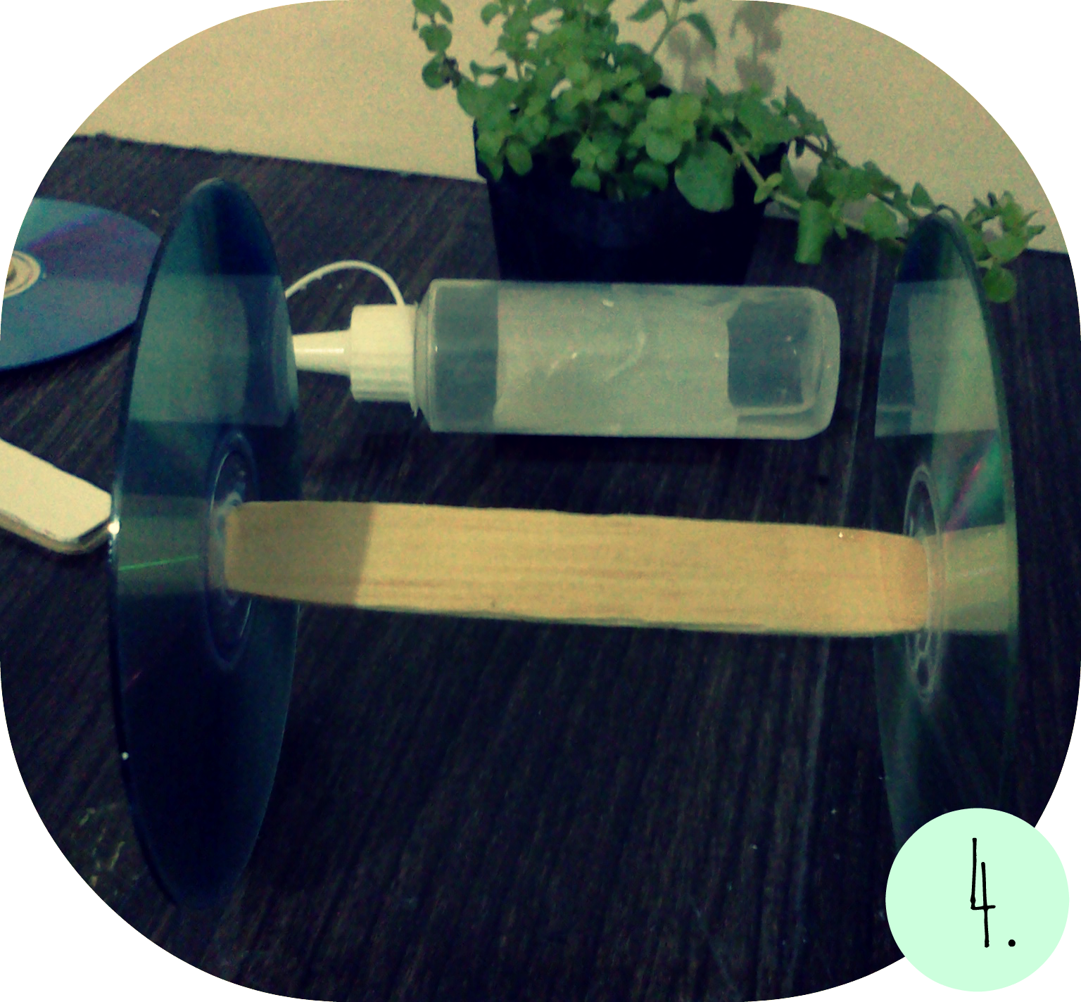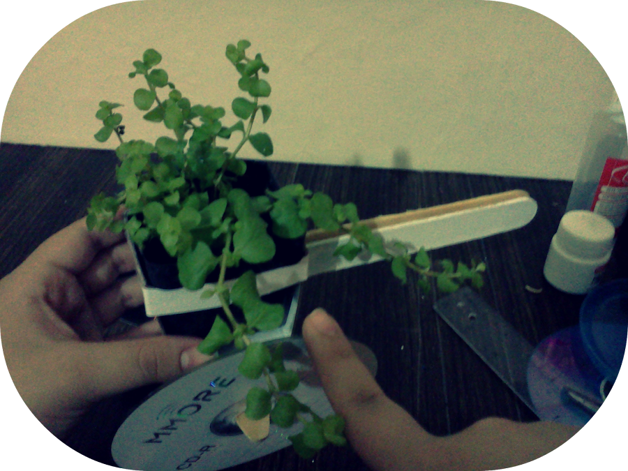 Despues de tanto pensar he puesto manos a la obra y he aqui el resultado es un macetero hecho con cd"s viejos y palitos de madera de estos de las paletas heladas si,si esos...