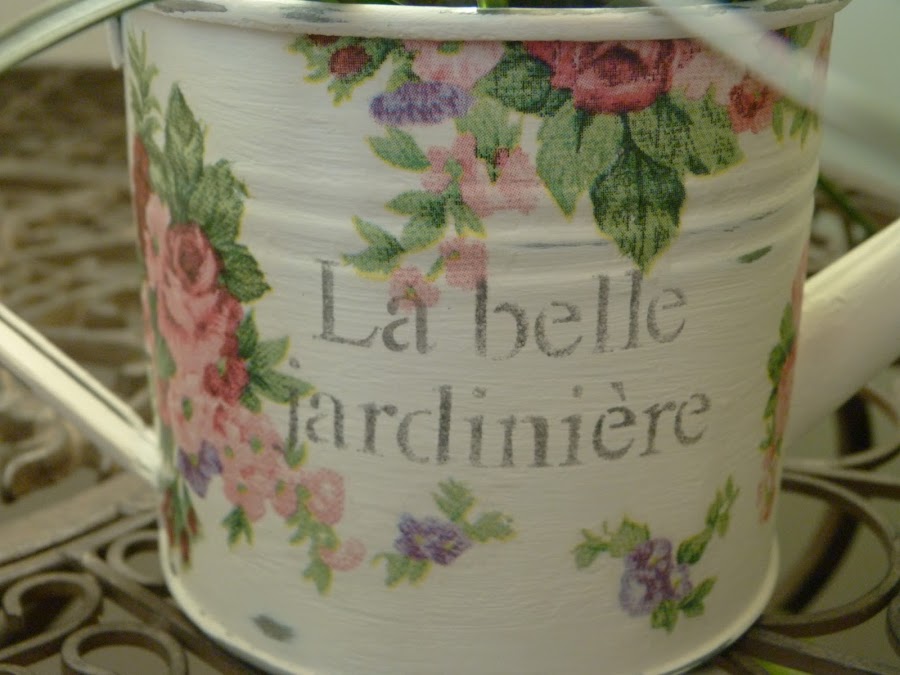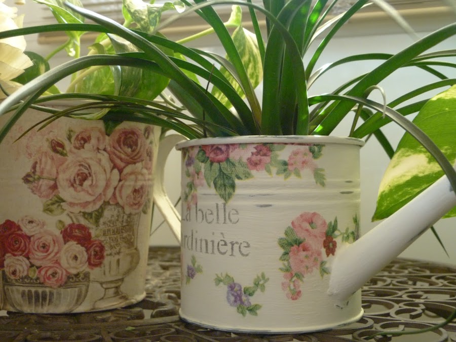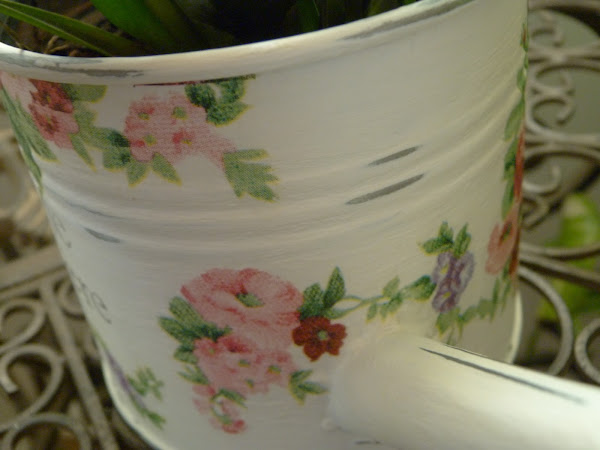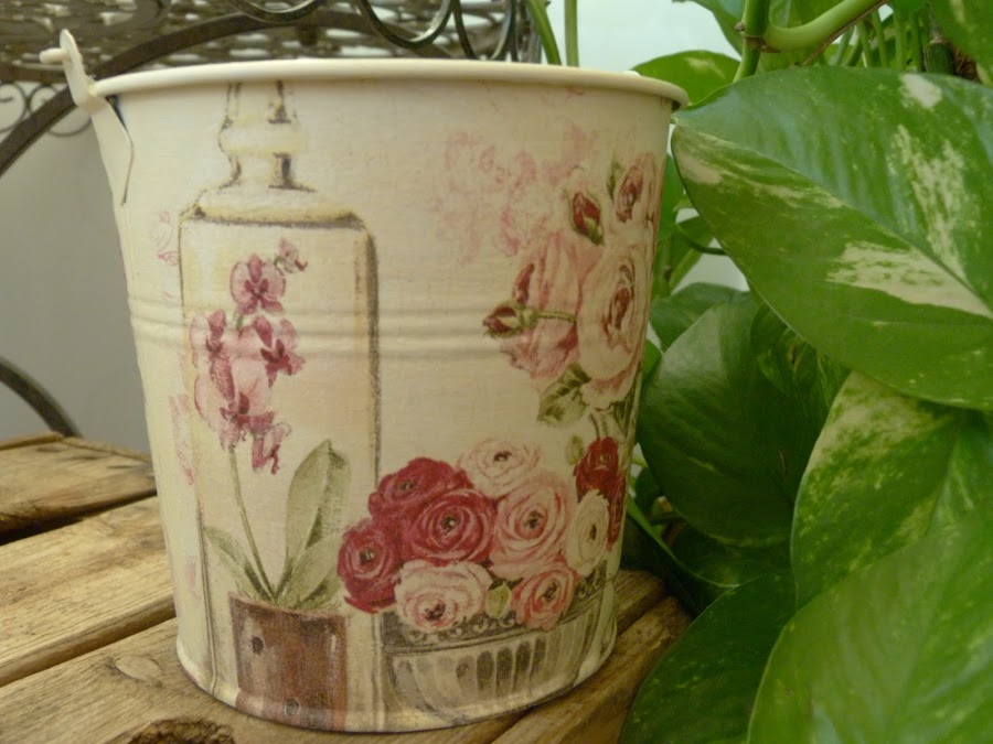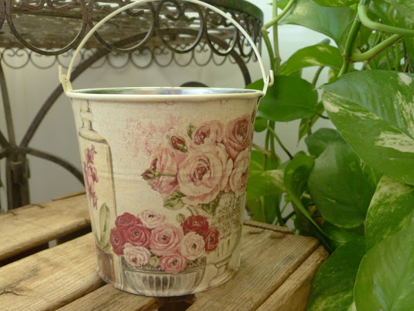 Para este reto primaveral, he decorado dos cubos y una regadera pequeñita que tenía en casa. Ya sabéis, esas cosas que compramos y vamos guardando para hacerlas cuando tengamos un ratito o estemos inspiradas. No tengo fotos del paso a paso... ni una sola, porque la verdad es que tampoco pensaba subirlas al blog, pero Inmaculada me ha dado la excusa perfecta!!!
