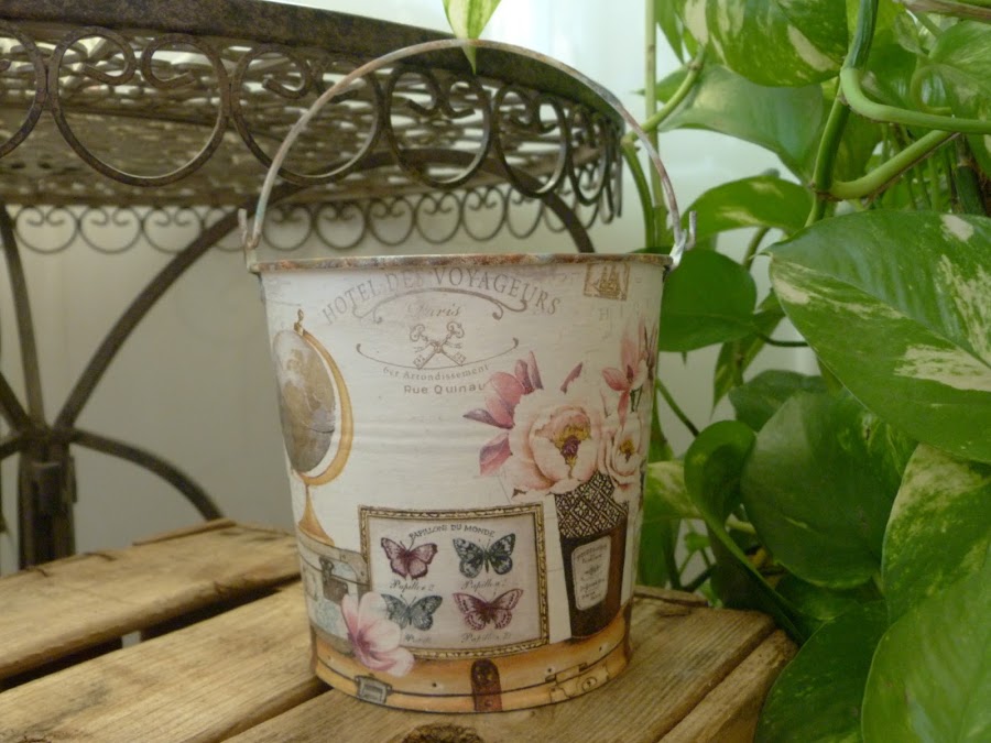 Otra ventaja de estos objetos de zinc es que son muy económicos... si los compramos sin decorar, claro, porque decorados son bastante caros. La alternativa perfecta es decorarlos nosotras mismas, totalmente a nuestro gusto y de forma muy sencilla.