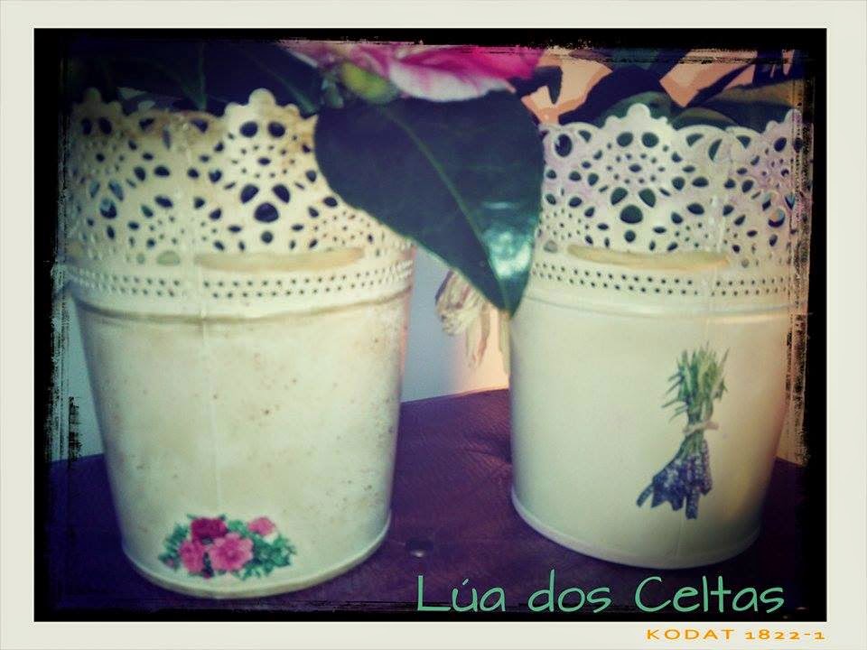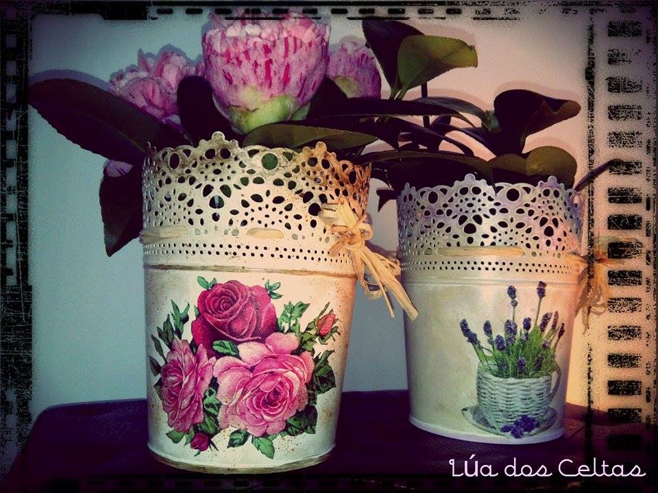 Hoy la cosa va de maceteros!...en una entrada anterior ya había trabajado con estos modelos que a mi parecer son chulísimos y dan un montón de juego...la otra vez, los decoré enteros pero ahora me apetecía cambiar el estilo...así que elegí solo los motivos florales....