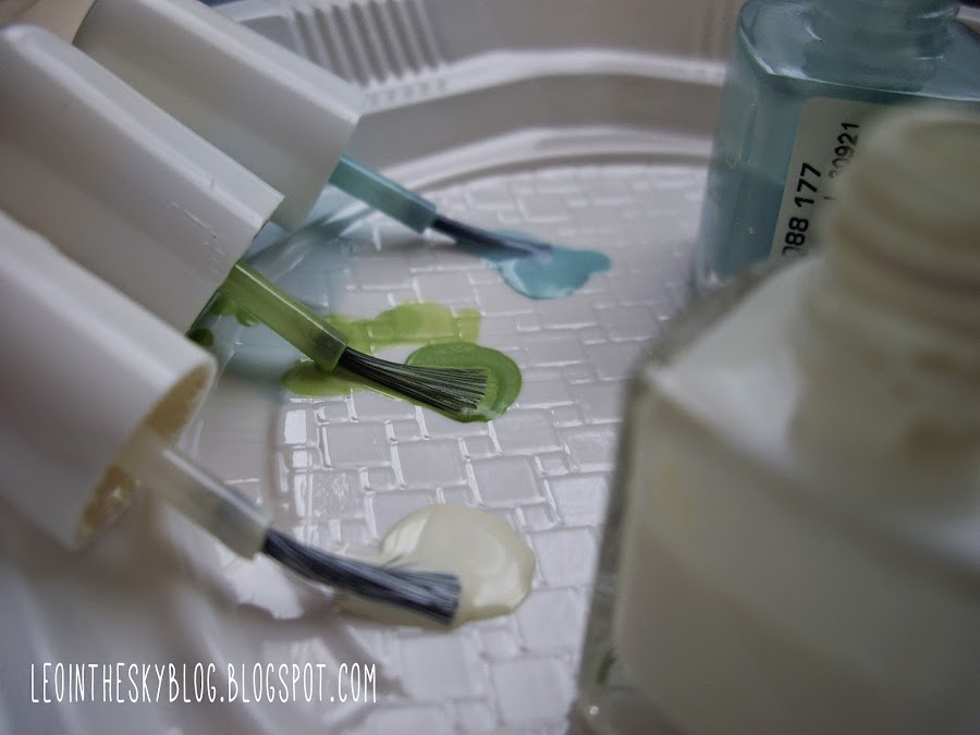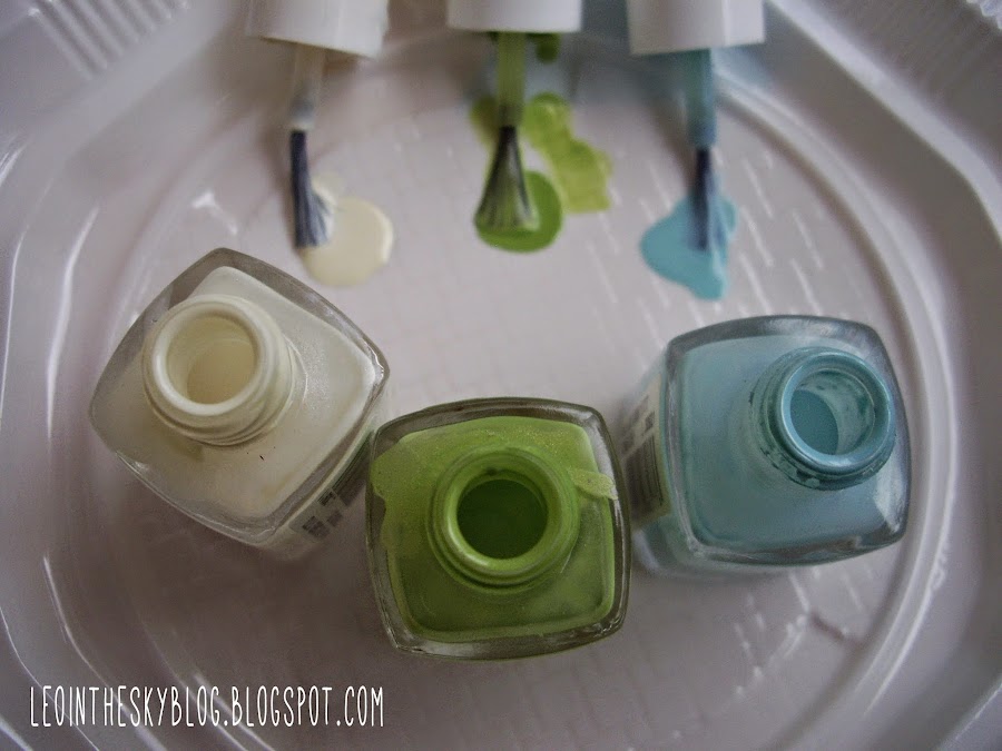 En realidad, además de estos tres pinta uñas también usé un esmalte de uñas de un color muy muy clarito, tanto que apenas se aprecia en la botella..., así que pensé que para la sesión de fotos macro lucirían mejor estos tres...