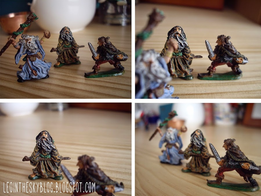 Sí, lo reconozco, tengo un pasado friki..., y como muestra estas figuritas de plomo que pinté dejándome los ojos hace muchos años (creo que ahora sería incapaz de pintarle los ojos al elfo sin lupa..), por un lado figuritas de Star Wars, una de mis sagas favoritas (las antiguas ¿eh? que las otras son un poco rollo) así que aquí tenéis a Darth Vader y a Obi-Wan Kenobi en una lucha mortal :P mientras un guardia del imperio mira impasible...