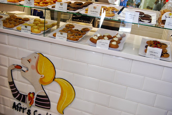Y nunca, nunca, nunca podemos pasar por Malasaña sin comprar un par de galletas en Afri´s Cookies, prácticamente enfrente, yo soy adicta al chocolate y suelo elegir la de Tarta Sacher, pero cualquiera de las que ofrecen están de muerte.