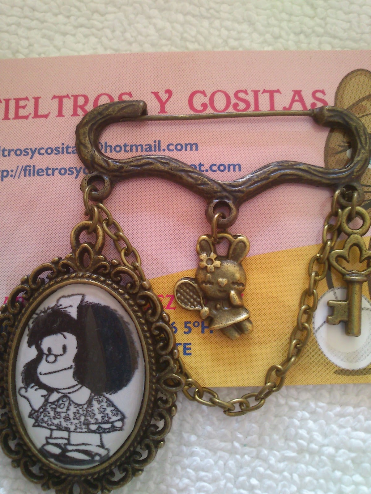 Como el primer camafeo de Mafalda que hice gustó tanto a todo el mundo, me animé para hacer alguno más y después de darle vueltas el resultado fueron estos dos camafeos adornados con cadenitas y diferentes charms y este camafeo,espero que gusten tanto como el otro... son ideales para regalar en las próximas fiestas no os parece???