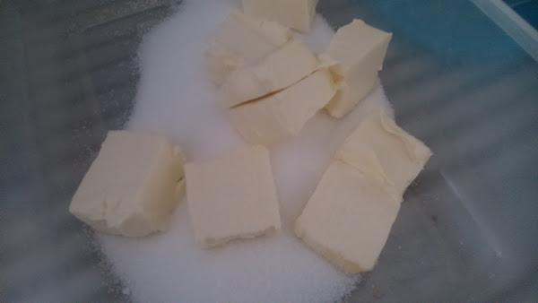 mezclamos el azúcar con la mantequilla