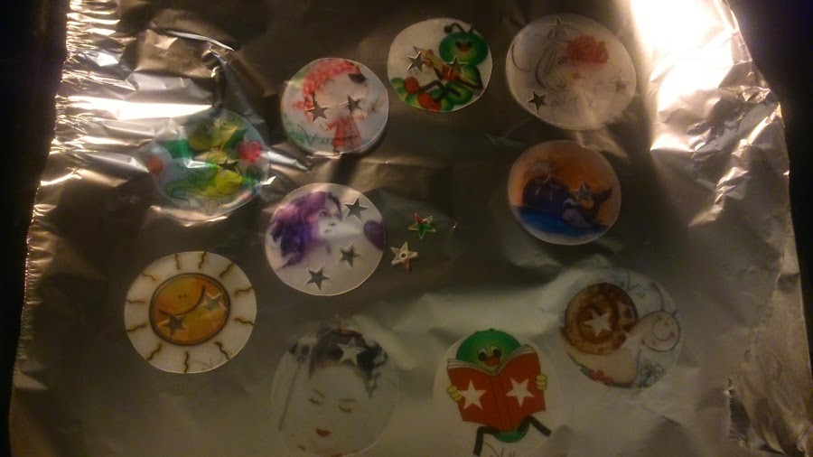 Al horno 3-4 minutos y listo! Mirad como han encogido con la calor... alguno no me ha quedado plano del todo, pero quedan muy chulos