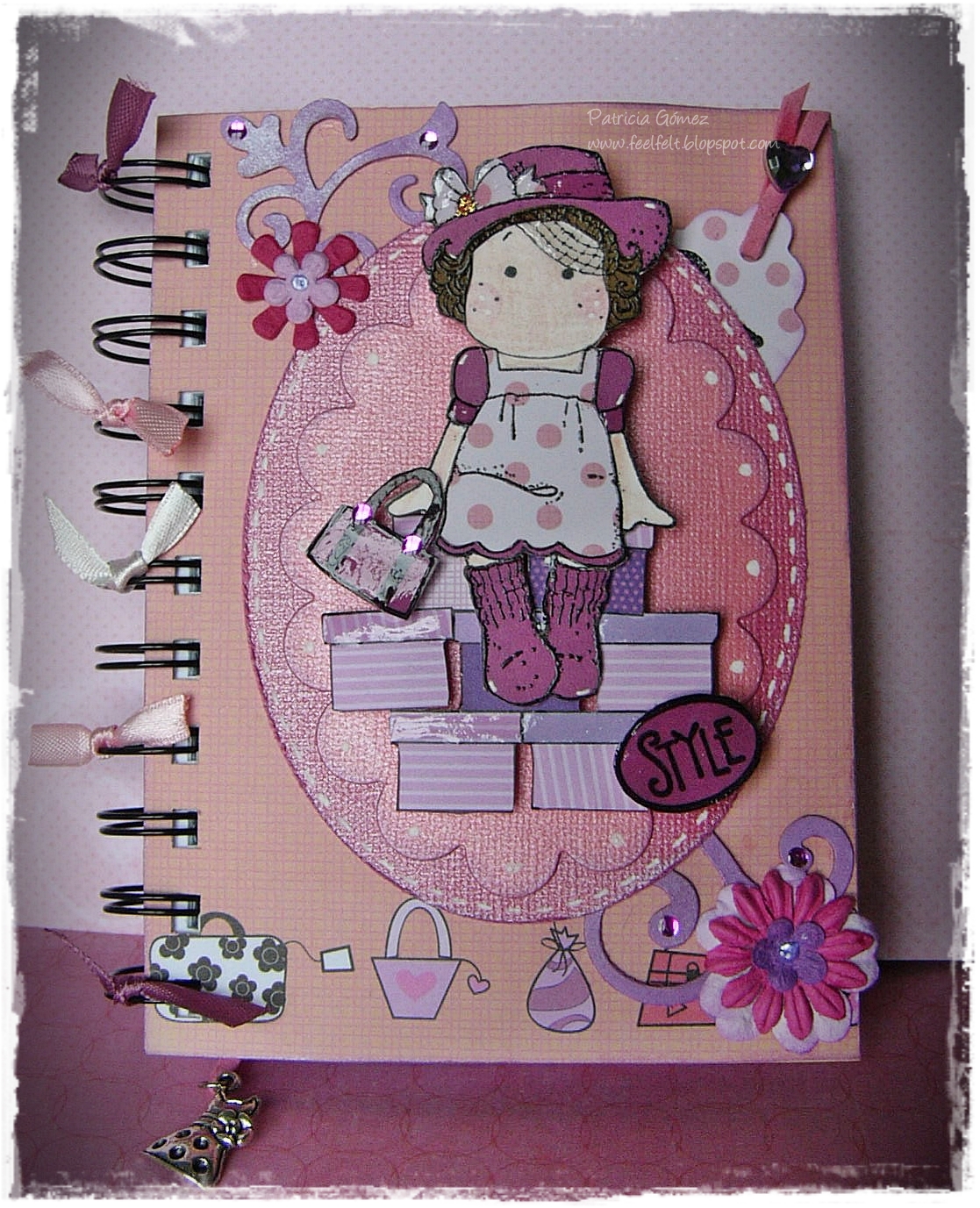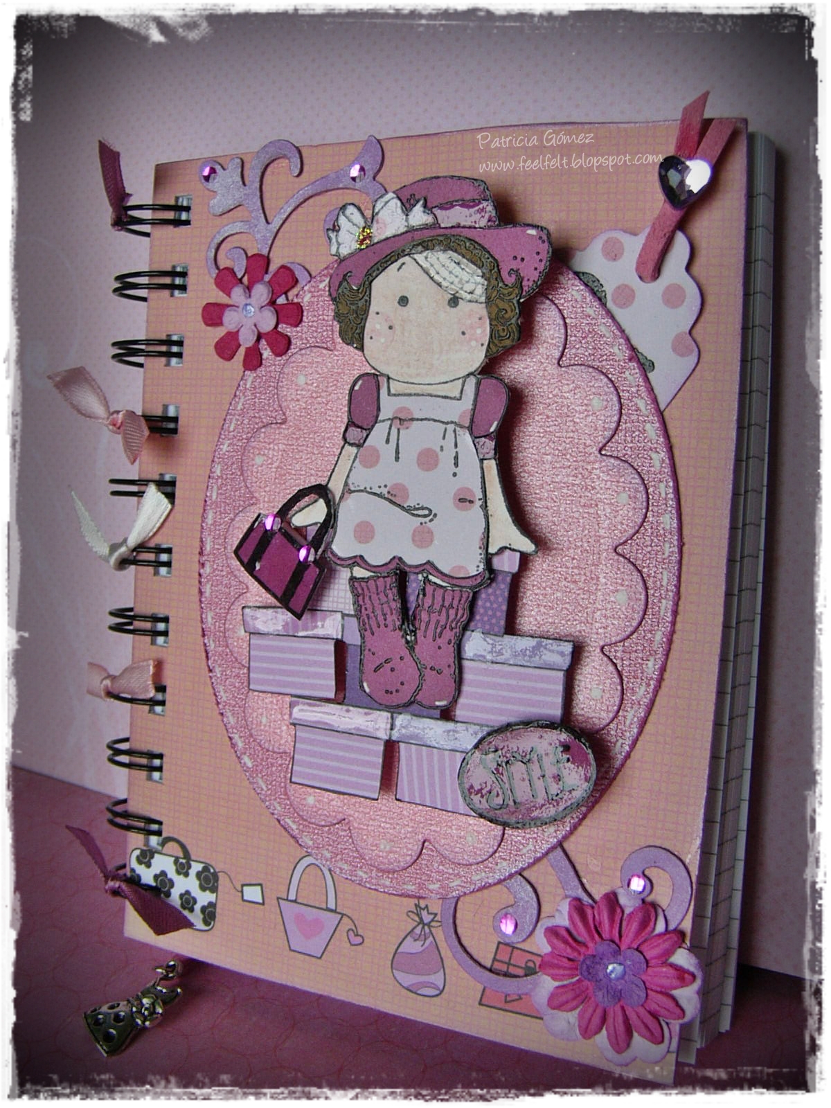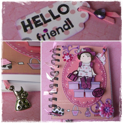 Algunos detalles de cerca (Tag escondido en el lateral derecho y charm de vestido como separador de paginas)