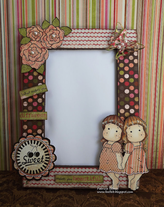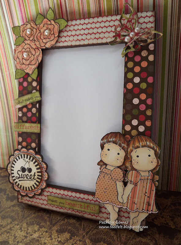 En esta ocasión ha sido en un marco RAM, que ya hacía algún tiempo que no tocaba ninguno...Los papeles Miss Little de Bo Bunny, una colección que me encanta.