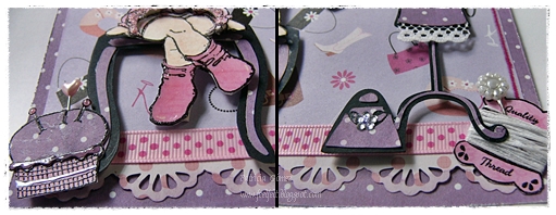 El sello de Magnolia se llama Ice Princess, y está realizado con Paperpiecing, y el otro paquete usado, ha sido Hero Arts Sew Arsty (alfiletero, bobina cartón y el texto del tag)