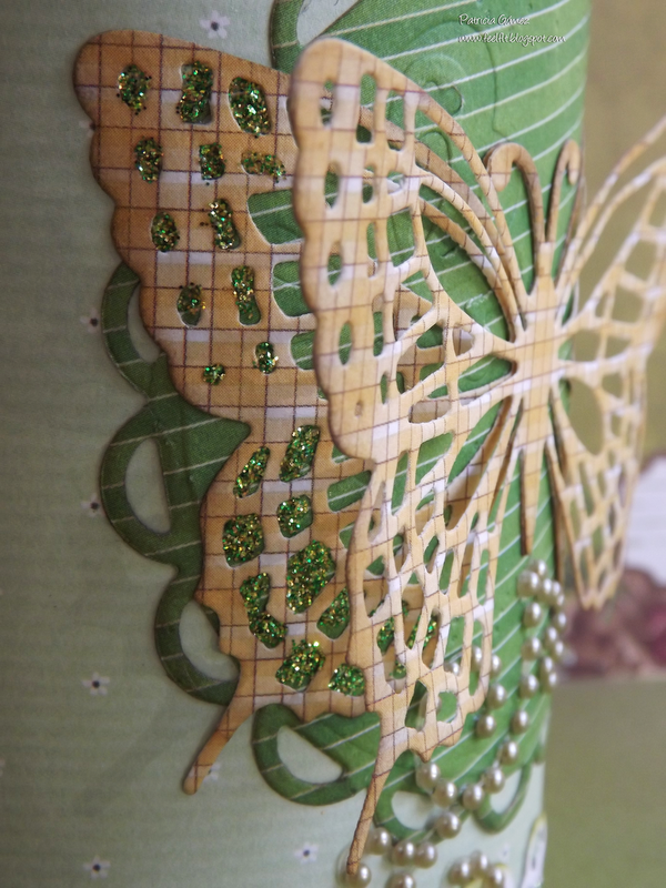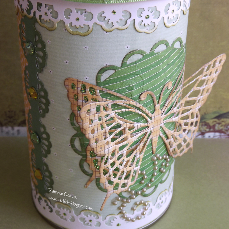 A la capa de abajo, pegada a la lata, le puse stickles lime green, para resaltar.